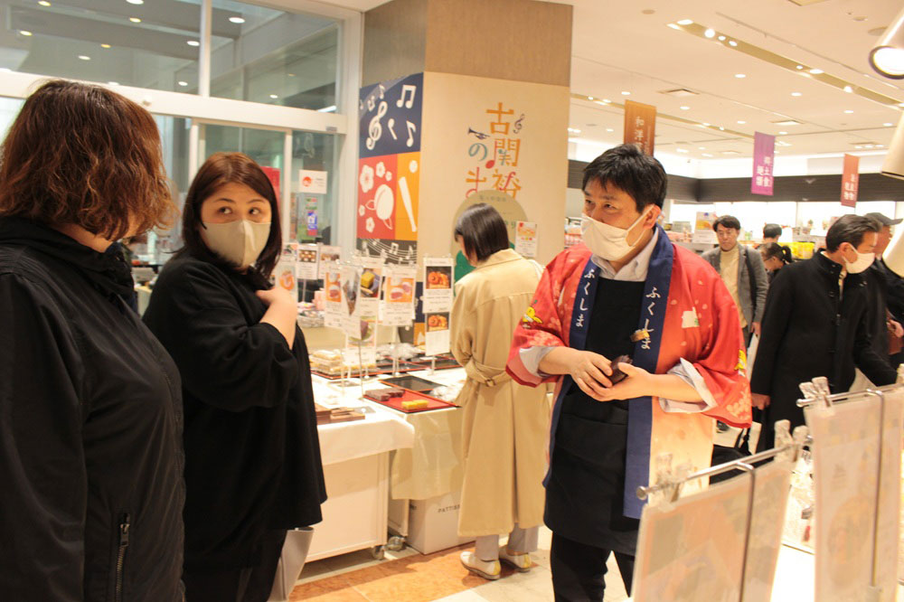 続いて、福島県観光物産館の櫻田館長に物産館の取組や販売の工夫などをご紹介いただきました。櫻田館長は「いろんな客層の人に来てもらい、楽しんでもらえる店を目指している」との物産館の方針を示し、「物産館で商品の魅力を知ってもらい、最終的にはそれぞれのお店に行ってもらえるようにすることが目的」と語りました。参加者からは食品ロスの状況と対応などについて質問が挙がっていました。